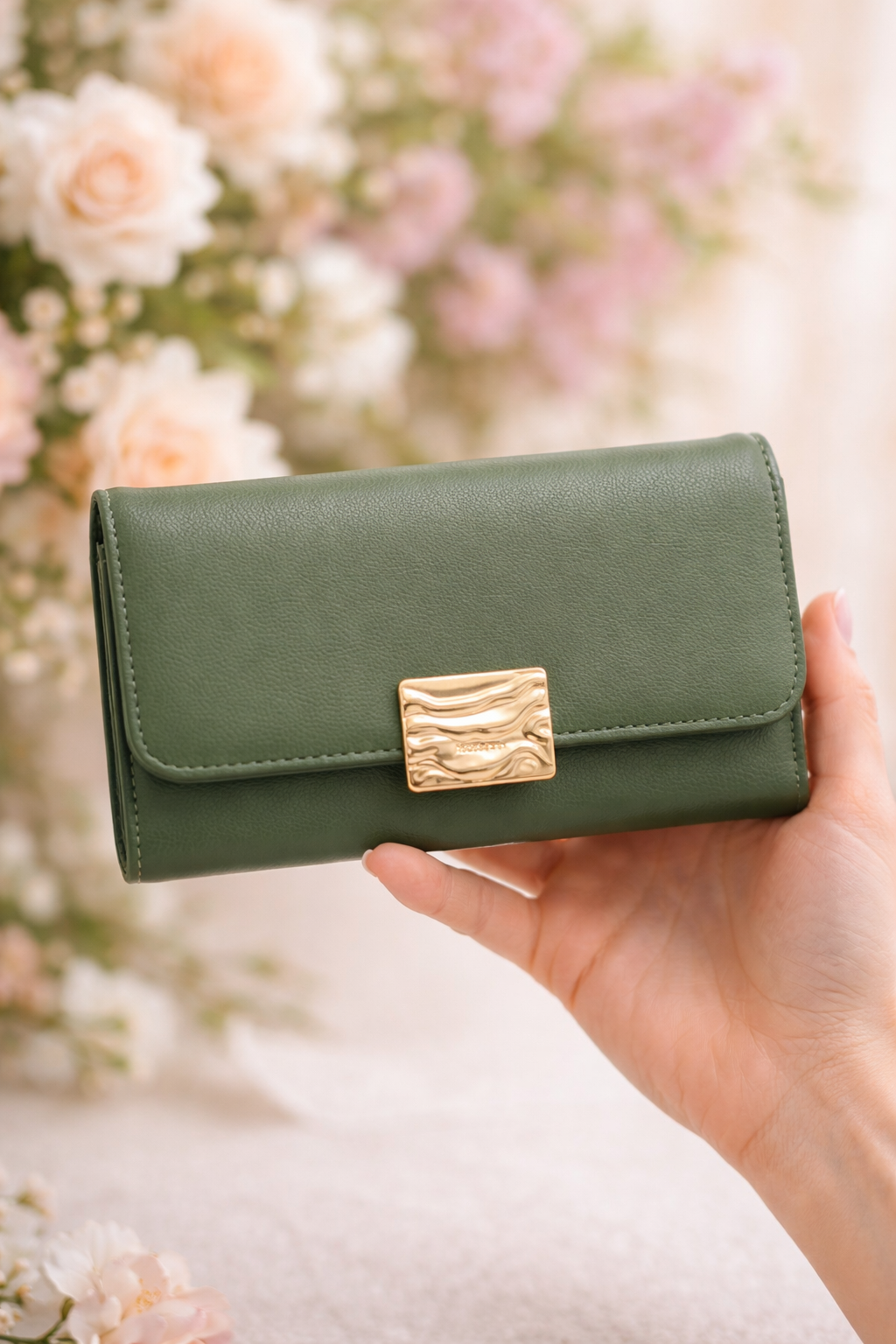 Earth-Toned Aesthetic: Finished in a deep, muted olive green that pairs beautifully with both neutral and bold handbags.
